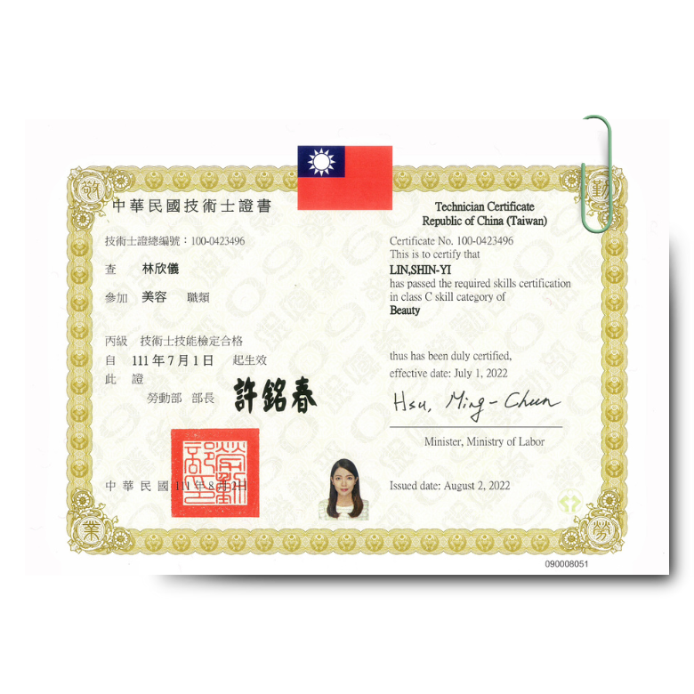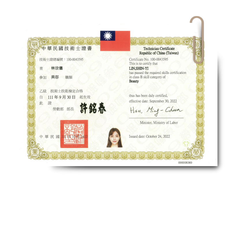 本人擁有中華民國美容乙級講師證、韓國K-beauty皮膚管理師及國際ISO17024證書,